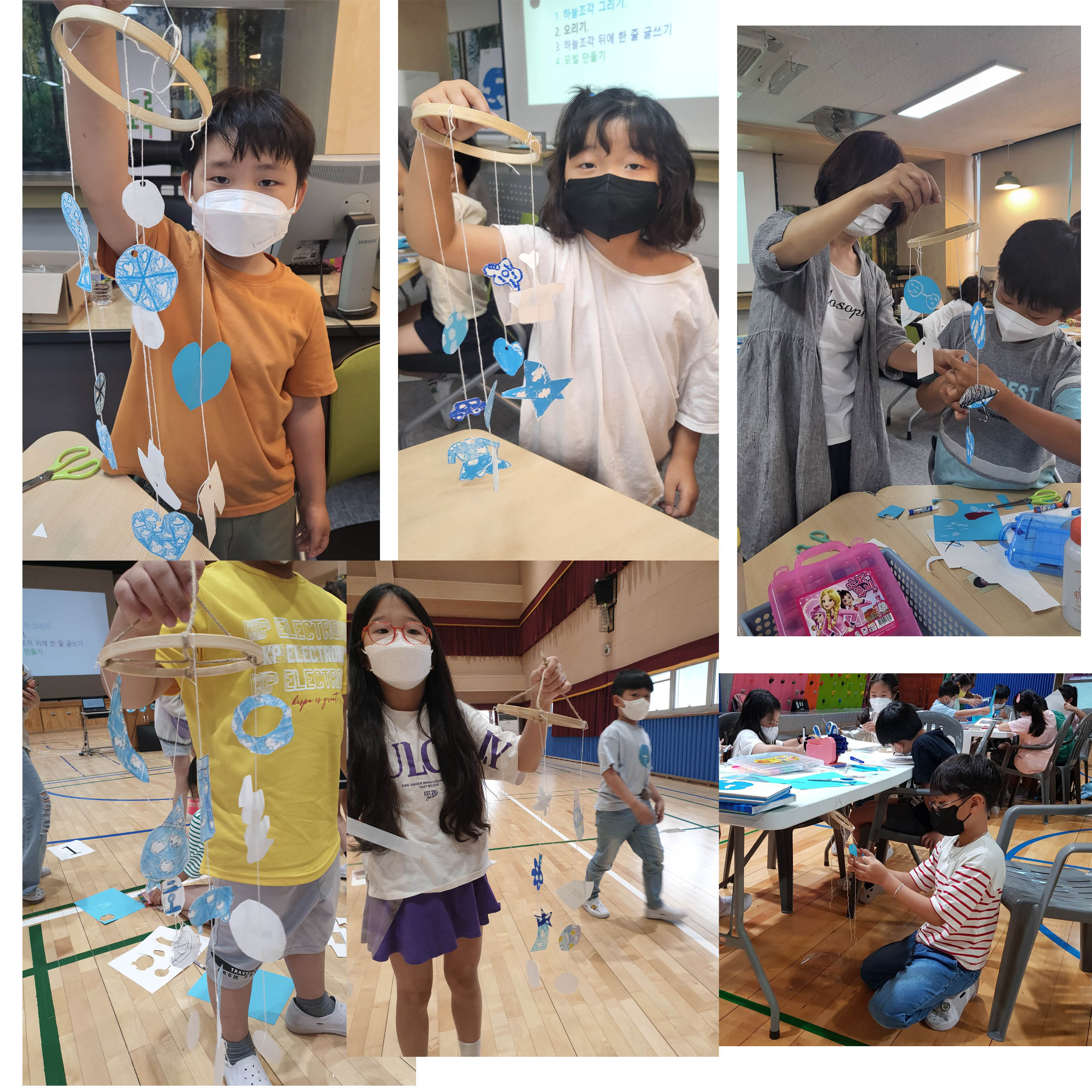 3. 그린 그림을 오려 하늘조각모빌을 만듭니다.